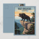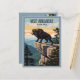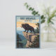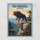 Bold earth tones and crisp geometric shapes give the postcard the unmistakable look of vintage American travel posters. Designed for collectors of cryptid postcards, monster posters, and Arkansas folklore, this piece blends regional myth with classic WPA design. The Ozark Howler’s panther‑like body, curved horns, and glowing red eyes are rendered with clean poster‑era simplicity, creating a striking focal point without modern visual noise.