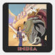 Vintage advertising poster promoting travel India with an elephant at a palace fortress.