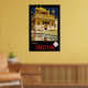 Vintage Visit India travel poster illustrated in Art Deco style. Vintage travel posters give us a nostalgic look back on the idealized style, fashion, transportation and favored destinations of the past.