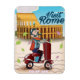 Visit Rome cartoon travel poster - Rome Italy moped scooter cartoon travel post card.