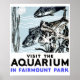 Summary: Poster promoting the aquarium in Fairmount Park as a place to visit, showing fish.