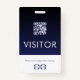 Keep your visitors and guests easily identified with this customisable company logo visitor badge. The navy blue and white design features a customisable logo and text that reads "Visitor" in a simple font. A QR code makes it easy for guests to access important information about your facility or event. The text at the bottom reminds visitors to please return the badge before leaving. This badge is perfect for businesses, hospitals, schools, museums, attractions, and more.