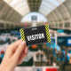 This badge design features a black and yellow striped pattern, along with the message "VISITOR" in bold text. It could perhaps be used to identify people who are authorised visitors at a company office or event.