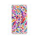 This is an abstract colourful design with vibrant hues in animal-like pattern (tiger or leopard).
