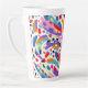 This is an abstract, playful, colourful design with vibrant hues in animal-like pattern (tiger or leopard).