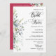 This bridal shower invitation features an elegant modern minimalist style with watercolor greenery foliage leaves arrangements and beautiful calligraphy and clean and serif typography fonts on a viva magenta background. The simplicity of this design adds a touch of elegance to your wedding. It works well with many wedding themes and definitely a great addition to your wedding. Just customise the name and wording in a few easy steps and personalise the invitation card with your photo of the bride-to-be and replace the QR Code with yours on the back of the invitation to give your invitation a nice personal touch.