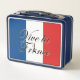 This is a standard metal lunchbox that appears to work just fine. We designed this box ourselves with an uploaded photo and custom text on the front and back. It looks absolutely beautiful except the front of the lunchbox is not centered like it shows in the photo. The print borders don't align with the inset flat part of the box where the preview photo online showed it perfectly centered in there. The back looks nice and centered though.