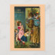 Designed by Susan Epps Oliver. "Vive St. Nicolas" vintage French Christmas card. The image shows St. Nicolas with a sack full of toys and three children waitng expectantly for their Christmas gifts. One small girl is peeping into his pocket to see what she can find.
