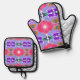 Vivid Aurora Kaleidoscope Electric Oven Mitt & Pot Holder Set