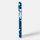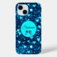 A pretty gift for someone special, this features a two-tone blue circle with a blue bow inside and text that you can personalise against a background of vivid hearts of different shades of blue.