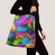 A dreamy abstract in vivid shades of yellow, green, pink, purple, blue, turquoise, orange, black and more adorn this fun bag.