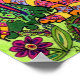 This multicolored striped cat with colourful, highly detailed markings is sitting in the shade of a dense, vivid garden teeming with exotic, ornately patterned plants and flowers in this unique and uplifting piece.