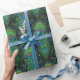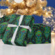 art nouveau inspired wrapping paper with a repeating pattern of vivid green peacock feathers on black
