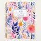 Personalise this whimsical planner with your name in navy blue italics framed by a white rectangle, on a bold, colourful background of hand-painted floral and botanical elements in shades of blue, pink and orange.