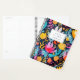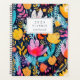 Personalise this whimsical planner with your name in dark blue italics framed by a white rectangle, on a bold, colourful background pattern of hand-painted floral and botanical elements in shades of turquoise, pink and yellow.
