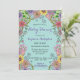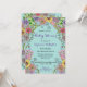 This Baby Shower invitation is a harmonious combination of elegance and vibrancy, intended to cordially invite guests to celebrate the upcoming arrival. The background is a gentle teal, creating a serene setting for the vibrant flowery border that surrounds the edges. A variety of flowers in radiant hues of purple, pink, yellow, and green intertwine gracefully, exuding a sense of blooming life and joyful anticipation. The text in the centre is clearly legible against the serene teal background that creates a calming effect. Overall, this invitation beautifully captures the joy and anticipation of a baby shower with its vibrant colours and elegant design. It's a fantastic combination of style and function, offering all the required details while also generating a visually beautiful invitation.