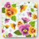 This vibrant floral pattern bursts with life, featuring richly colored pansies in bold shades of purple, gold, orange, and magenta. Each flower is intricately detailed, surrounded by fresh green leaves and delicate swirling vines, creating a dynamic sense of natural motion. Subtle gray blossoms in the background add depth without overpowering the design.