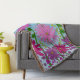Vivid Pink Flower Drawing on Blue Throw Blanket