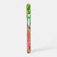 Cell phone case has a solid block of white on one side and a colourful swirl pattern on the other half. Faux glitter in gold accents adds a festive feel. Add an initial, name or other text in vertical orientation in black letters for a more meaningful gift.