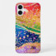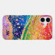 Cell phone case with rainbow coloured swirl pattern. Faux glitter confetti and gold accents adds a festive feel. Add initials for a personalised touch in black letters.