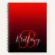 Vivid Red Burgundy and Black Ombre Monogram Notebook