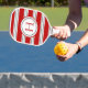 Vivid Red & Grey Modern Striped Monogram Pickleball Paddle