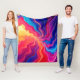 Vivid Waves: Abstract Neon Energy Flow Art Fleece Blanket