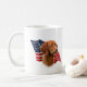 USA! America! Shout your pride with this awesome flag Patriotic background with this AKC dog breed Vizsla in the forefront. Show your pride with this design on a t-shirt, mug, and much, much more!