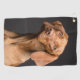 The golf towel exceeded my expectations! My husband actually approved of it! He liked the picture quality, thickness and overall usefulness of the golf towel I ordered to commemorate his lowest ever golf score. He liked it so well that I ordered 8 more towels with photos of his home golf course. Each one of the eight has the name of one of his golf group members. I will give them as party favors at my husband's 70th birthday party later this year. The different names were easy to add because the Zazzle template is so very easy to use. The colors were bright and authentic in all 9 of the towels that I made. The one of the 9 that I ordered has come out of the wash and line dry looking great.
