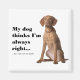 This funny magnet is a great gift for any Vizsla lover. "My dog thinks I'm always right . . . my wife, not so much."