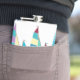 The flask itself is fine. It’s a cheap flask, obviously bought in bulk, however am prepared to overlook that. Given that it is a personalized item, I would have liked to have seen gift boxing instead of the generic packaging. Terrible printing, and/or quality. It’s a cheap, tacky vinyl. It is not cut straight and is also applied in a way that it is overhanging the bottom, causing the glue to catch on items and it will eventually roll and tear, damaging the wrap.