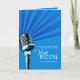 Graphic retro style chrome microphone graphics and vocal projecting lines vocal recital music performance program schedule in blue and white. Perfect for your guests to see the order of events and credit your performers that are either voice, singing or open mic, musical or at a speaking recital or musical event. Customise with your own event details including the orchestra. Ideal for a fundraiser event or and dedicated to a special person. Other matching items are available. © Unique design and illustration by Sarah Trett for www.mylittleeden.com (back photo placeholder photo by Obie Fernandez on Unsplash).