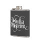 The flask itself is fine. It’s a cheap flask, obviously bought in bulk, however am prepared to overlook that. Given that it is a personalized item, I would have liked to have seen gift boxing instead of the generic packaging. Terrible printing, and/or quality. It’s a cheap, tacky vinyl. It is not cut straight and is also applied in a way that it is overhanging the bottom, causing the glue to catch on items and it will eventually roll and tear, damaging the wrap.