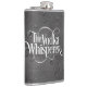 The flask itself is fine. It’s a cheap flask, obviously bought in bulk, however am prepared to overlook that. Given that it is a personalized item, I would have liked to have seen gift boxing instead of the generic packaging. Terrible printing, and/or quality. It’s a cheap, tacky vinyl. It is not cut straight and is also applied in a way that it is overhanging the bottom, causing the glue to catch on items and it will eventually roll and tear, damaging the wrap.