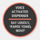 "Voice activated dispenser - Say loudly 'Paper Towel Now!'" Sticker