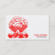 A business card template with an original pen and ink style illustration depicting an erupting volcano with billowing smoke, ash, balls of molten rock raining from the sky and rivers of hot lava. Also has some trees and a worried looking house. Company details on the front, with name and contact details in the reverse side with a repeat of the volcano motif. Can be customised in lots of ways suitable for many types of business, or could be used as a profile card.
