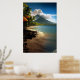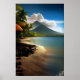This amazing print features a beautiful view of ocean beach looking out towards volcanos under blue a blue sky. By 1bizchoice, all rights reserved.