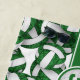This volleyballs pattern beach towel features a random pattern of varied size green and white stylised volleyballs turned every which way on a customisable white background - personalise with her name and jersey number - by katz_d_zynes