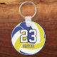 Show off team pride on and off the court with this Volleyball Ball Custom Name & Jersey Number Keychain. Designed with a vibrant blue yellow and white ball background, this sporty accessory lets you personalize the player name and jersey number in bold white typography with a clean black outline for maximum impact. Perfect for volleyball lovers, sports teams, school teammate gifts, or a thoughtful surprise for a coach, this keychain is great for boys and athletes who love representing their team. A fun and practical choice for personalized sporty gifts that score every time!