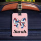 This customizable bag tag features a portrait of a ribbon bow modeled after a volleyball.