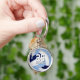 This team colours volleyball keychain for girls or boys features the realistic image of a volleyball that has navy, light blue and white panels - customise the athlete's name, jersey number, team name and mascot name - by katz_d_zynes