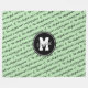 This fun volleyball themed fleece blanket for girls features the text, "The volleyball court is my happy place" in a casual handwritten-style font along with heart shapes in black patterned diagonally on a mint green background - personalise with her name and monogram or varsity letter on large circle pendant - background, circle pendant, and personalised text colour can be changed to ANY colour that contrasts with the black text pattern - katz_d_zynes