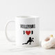 A female volleyball player digs for the ball underneath the words "VOLLEYBALL DAD." The A in "DAD" is formed by a heart.