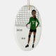 Volleyball Female Black Hair Green & Black Ceramic Ornament