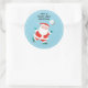 Creative volleyball Christmas holiday gift stickers and party favours design featuring Santa volleyball player.