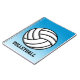 Cute black and white cartoon volleyball ball on a blue gradient background and a customisable text area that now reads "volleyball".