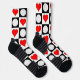 Fun high performance athletic crew socks for volleyball players, coaches and fans, with a seamless black and white chequered pattern featuring volleyballs on the black squares and bright red hearts on the white squares. These are perfect for volleyball players to wear to volleyball practices and team events, or any time during volleyball season. Great for volleyball coaches and fans as well!