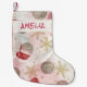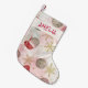 Celebrate the holidays with a sporty flair using this unique personalised Christmas stocking. Featuring a charming watercolor design with festive pink and red hues, sparkling golden snowflakes, and stylish volleyballs with Santa hats. Personalise with name, making it an ideal gift for volleyball players, coaches, or fans. Hang it by the fireplace with care, ready for Santa to fill with treats, and add a special touch of their favourite sport to your holiday decor.