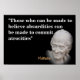 “Those who can be made to believe absurdities can be made to commit atrocities”  Voltaire quote.  A lot of absurdities fly around media these days, is anybody buying them?  That’s probably worth a think.