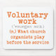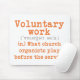 The orange words on the mousepad are: "Voluntary work - what church organists play before the service." A play, or a pun, on words because the piece of music played before and after a service is known as a voluntary. Just the perfect gift for a church musician.